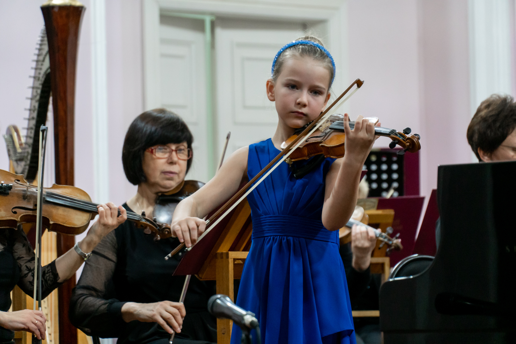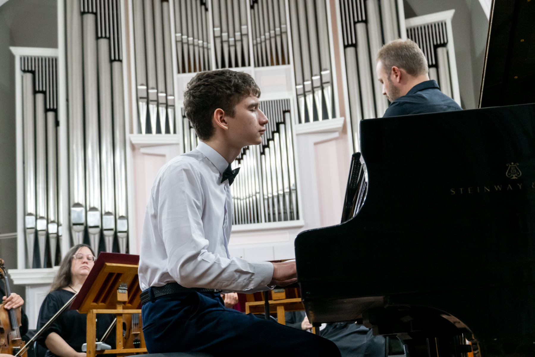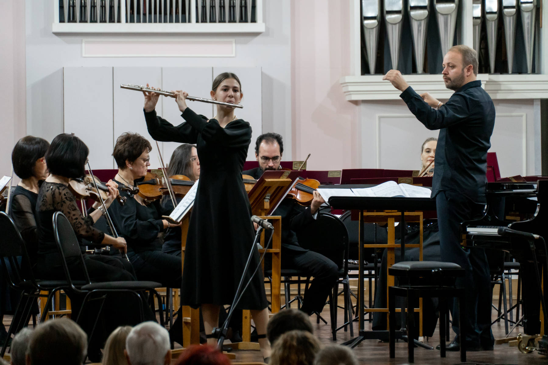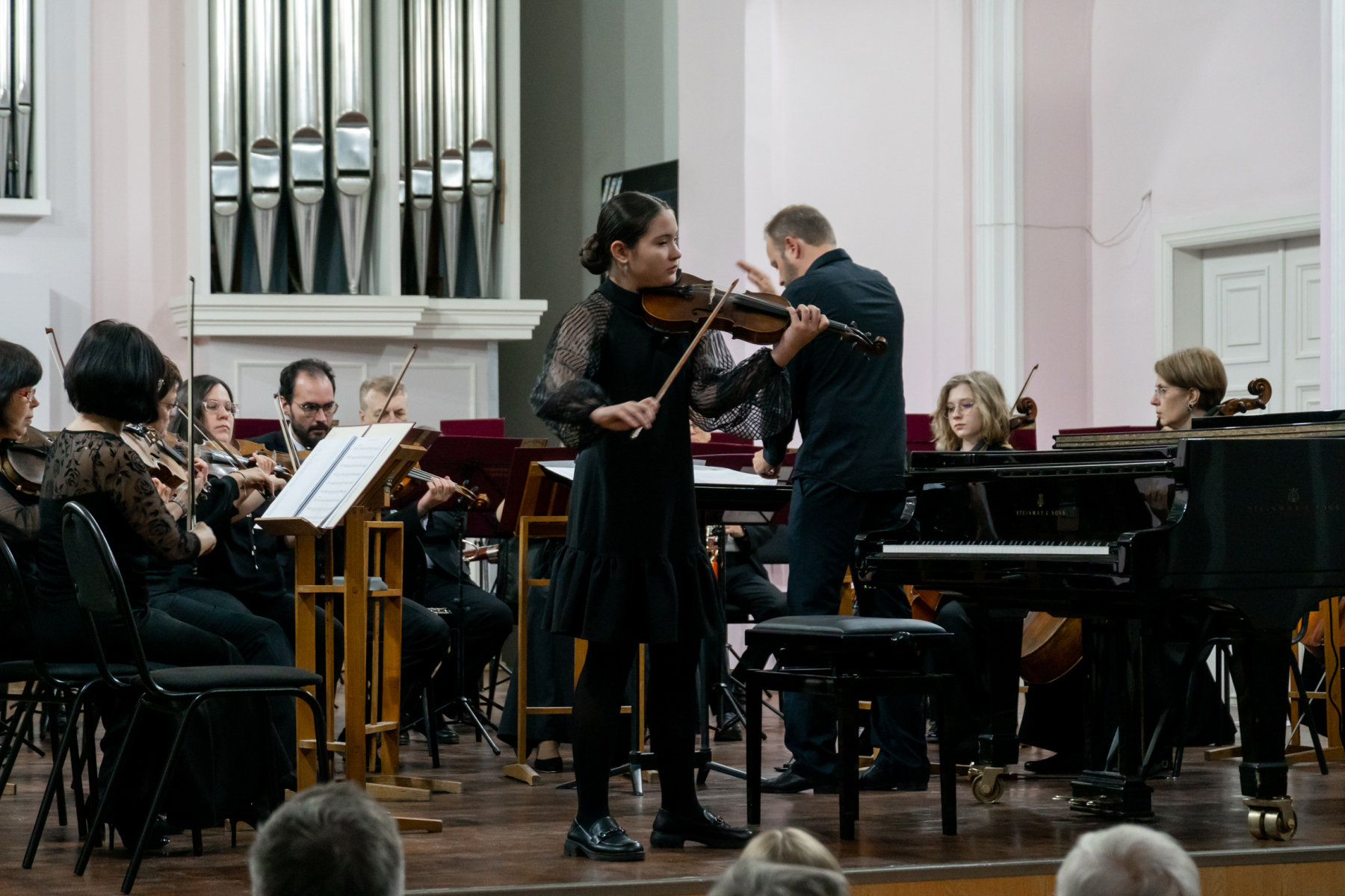 В этот вечер с Томским академическим симфоническим оркестром под управлением главного дирижера Игоря Берендеева выступили 16 юных музыкантов из Томска, Северска, Первомайского, Каргаска и Стрежевого. Возраст самого младшего участника – 7 лет.