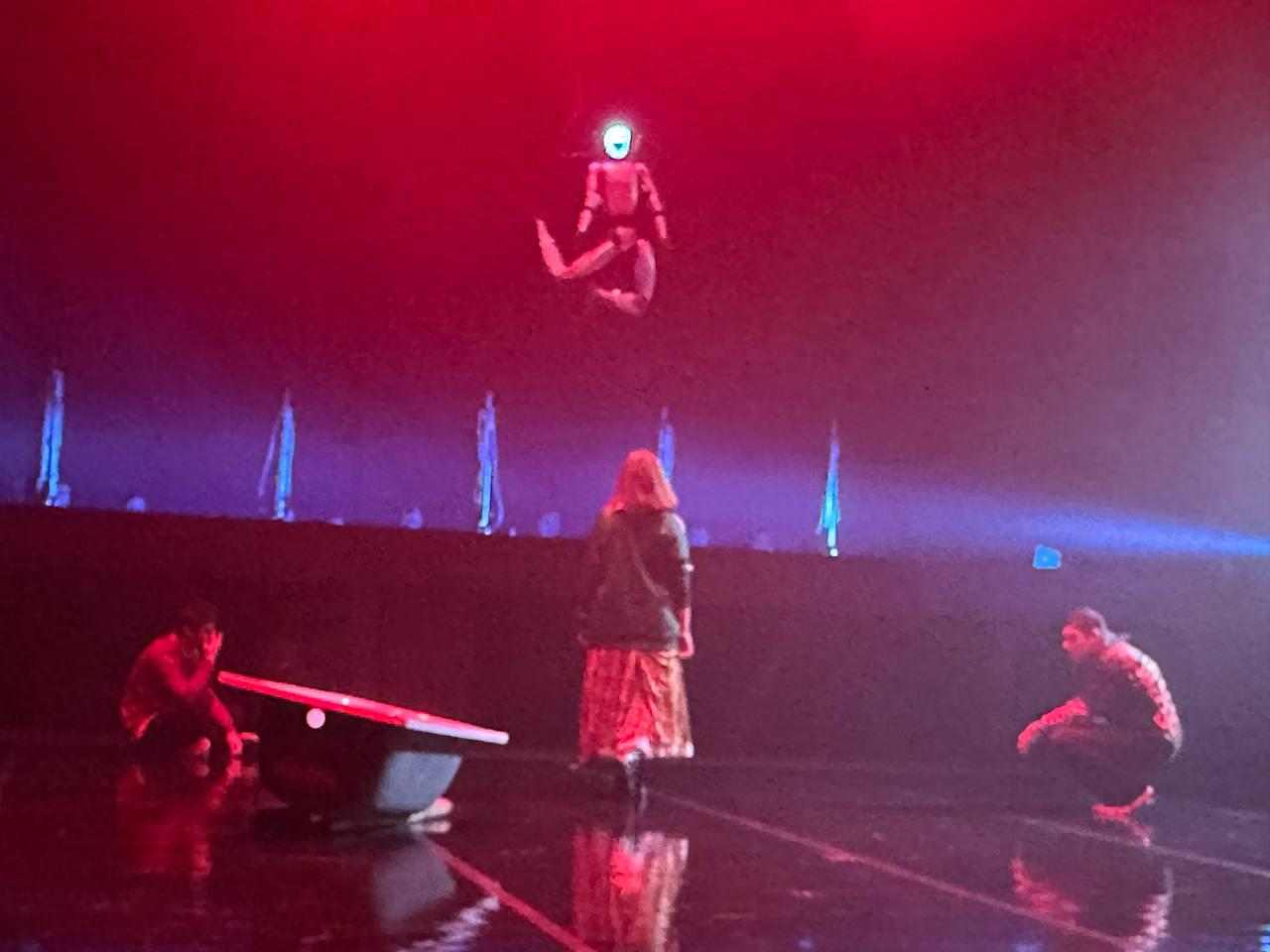 «Лакуна» – это пьеса о столкновении нового с вечным. На сцене, в пространстве коммуналки, встречаются поэты и робот-гуманойд G1. Его неподвижность превращается в акт совместного творчества: ритуал проникновения в тёмный экран лица машины становится метафорой преодоления одиночества цифровой эпохи.