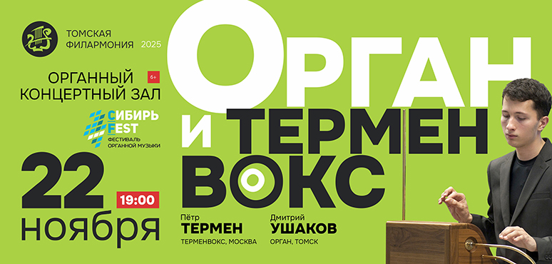 На этот раз концерта дуэта Орган и терменвокс откроет второй фестиваль органной музыки «СибирьFEST». За органом – лауреат международных конкурсов, солист Томской филармонии Дмитрий Ушаков.