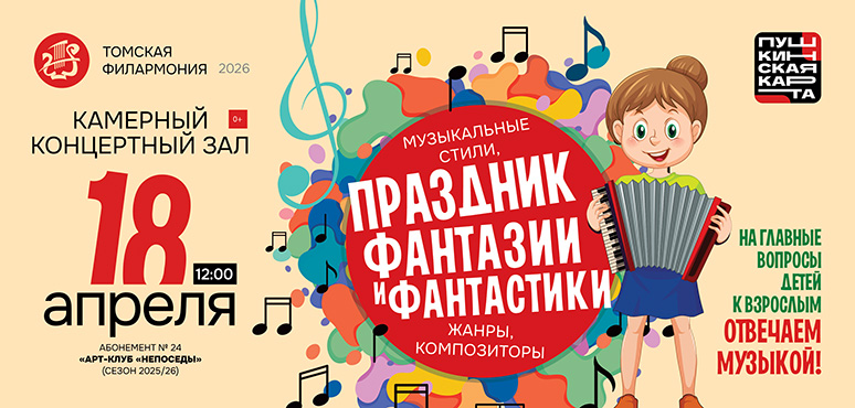 Ждем юных исследователей от 4-х лет и их взрослых друзей. Томская филармония готовит большой праздник фантазии и смелых экспериментов. Юные слушатели вместе с артистами будут проверять на прочность самые фантастические идеи. Вы когда-нибудь слышали, как звучат обычные заборы? А хотите отправиться в музыкальную «динозафрику» или прокатиться на скоростном «Паповозе»? Мы обязательно выясним, почему на голове не растут ромашки, и докажем, что в музыке возможно всё.