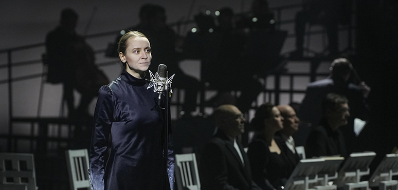 В предыдущем посте мы не упомянули имя актрисы Анны Ганжи. В спектакле «Ленинградская симфония» она играет Поэта. Именно так – с большой буквы и в мужском роде – назвали авторы пьесы Инна Гаручава и Петр Хотяновский поэтессу Ольгу Бергольц. Она стала прототипом образа героя Анны Ганжи, её стихи со сцены читает актриса.