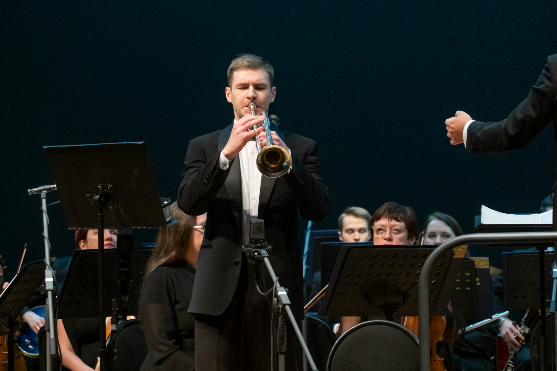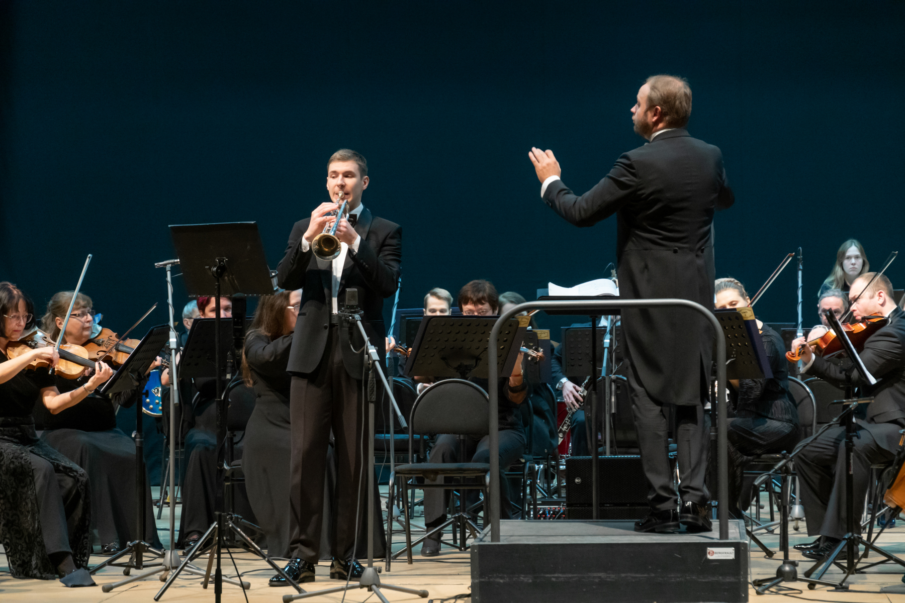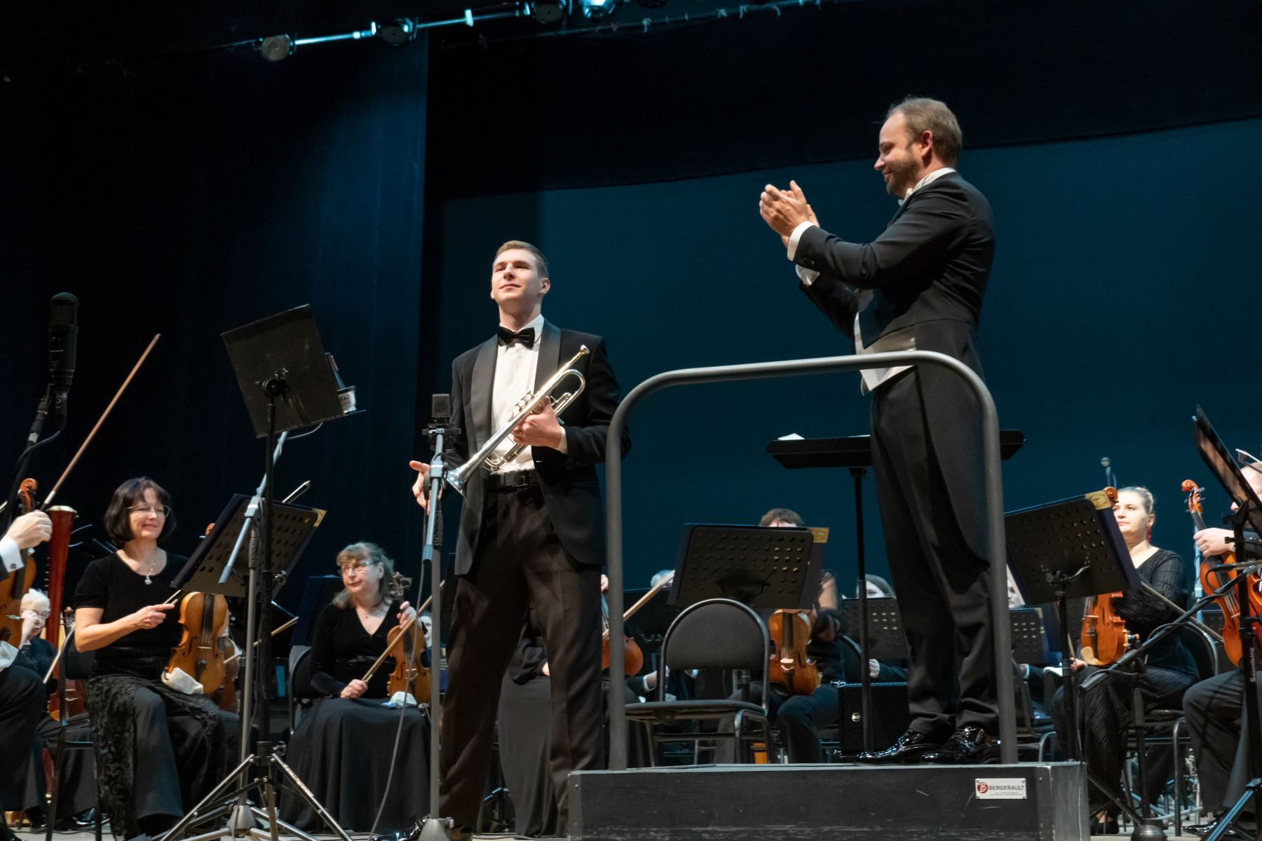 Морозная неделя в Томске стала очень жаркой на события в Томской филармонии. Кто не испугался 35-градусного мороза, зарядился энергией блестящих музыкантов – лауреатов всероссийских и международных конкурсов, солистов оркестра Мариинского театра Семена Саломатникова (труба), Федора Освера (гобой) и Федора Шагова (туба). Артисты выступили на сцене Большого концертного зала Томской филармонии вместе с Томским академическим симфоническим оркестром под управлением главного дирижера Игоря Берендеева 10 декабря. Этот день навсегда войдет в историю томской культуры.